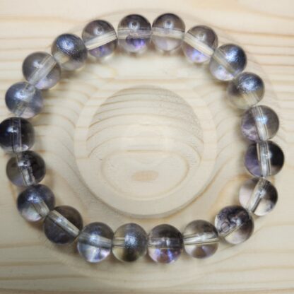 This stunning set comes with 3 handmade one of a kind bracelets that compliment each other in a stack. The main focal bracelet is made with 12mm clear and sparkling beads, 10mm matte gray beads, and 8mm satin gray beads. The set rounds out with one 10mm dark shimmer transparent beaded bracelet and one 10mm matte gray beaded bracelet.